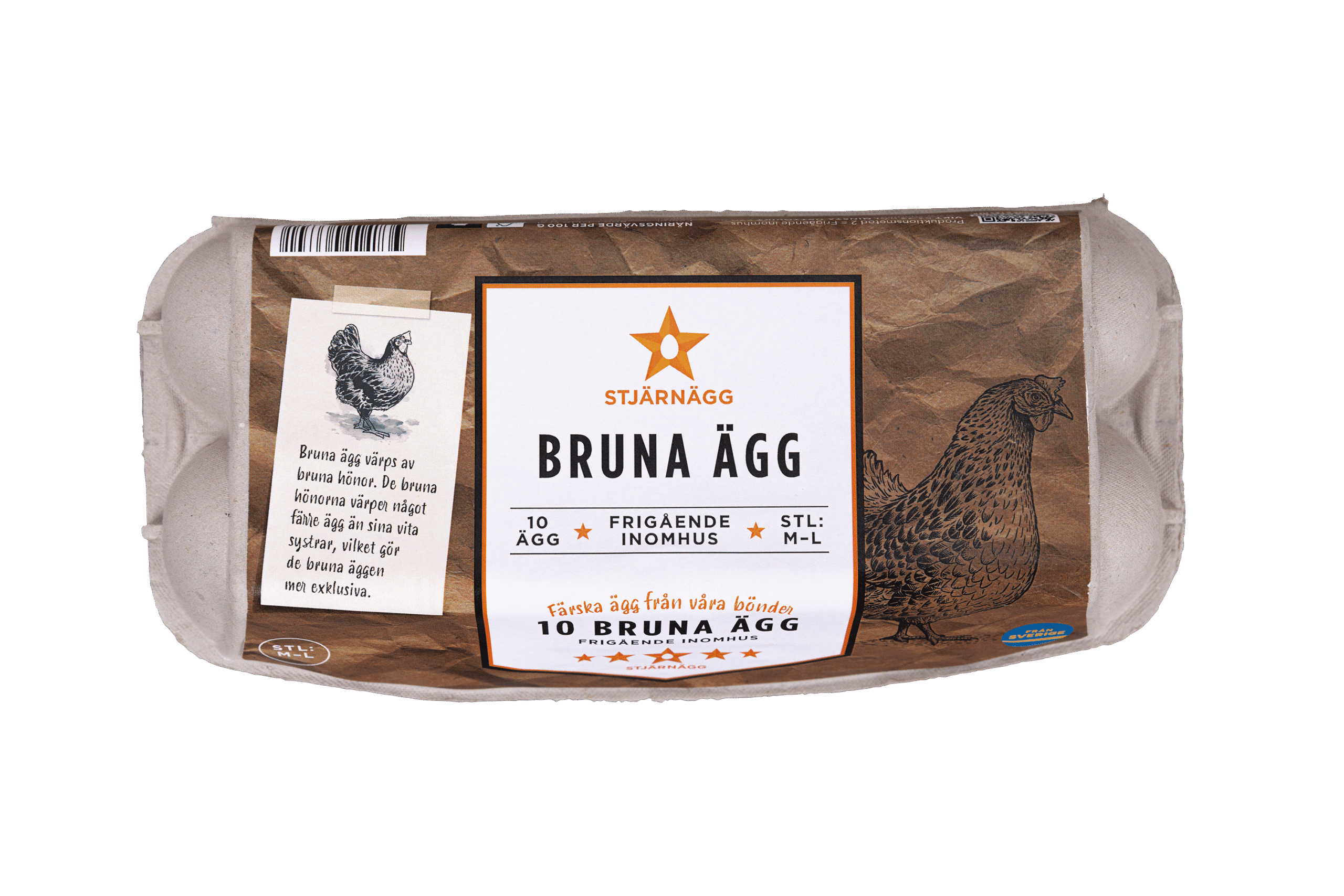 Svenska ägg från bruna frigående höns som lever fritt inomhus. De bruna äggen har samma goda smak och höga kvalitet som våra vita ägg, perfekta för frukost, bakning och matlagning.