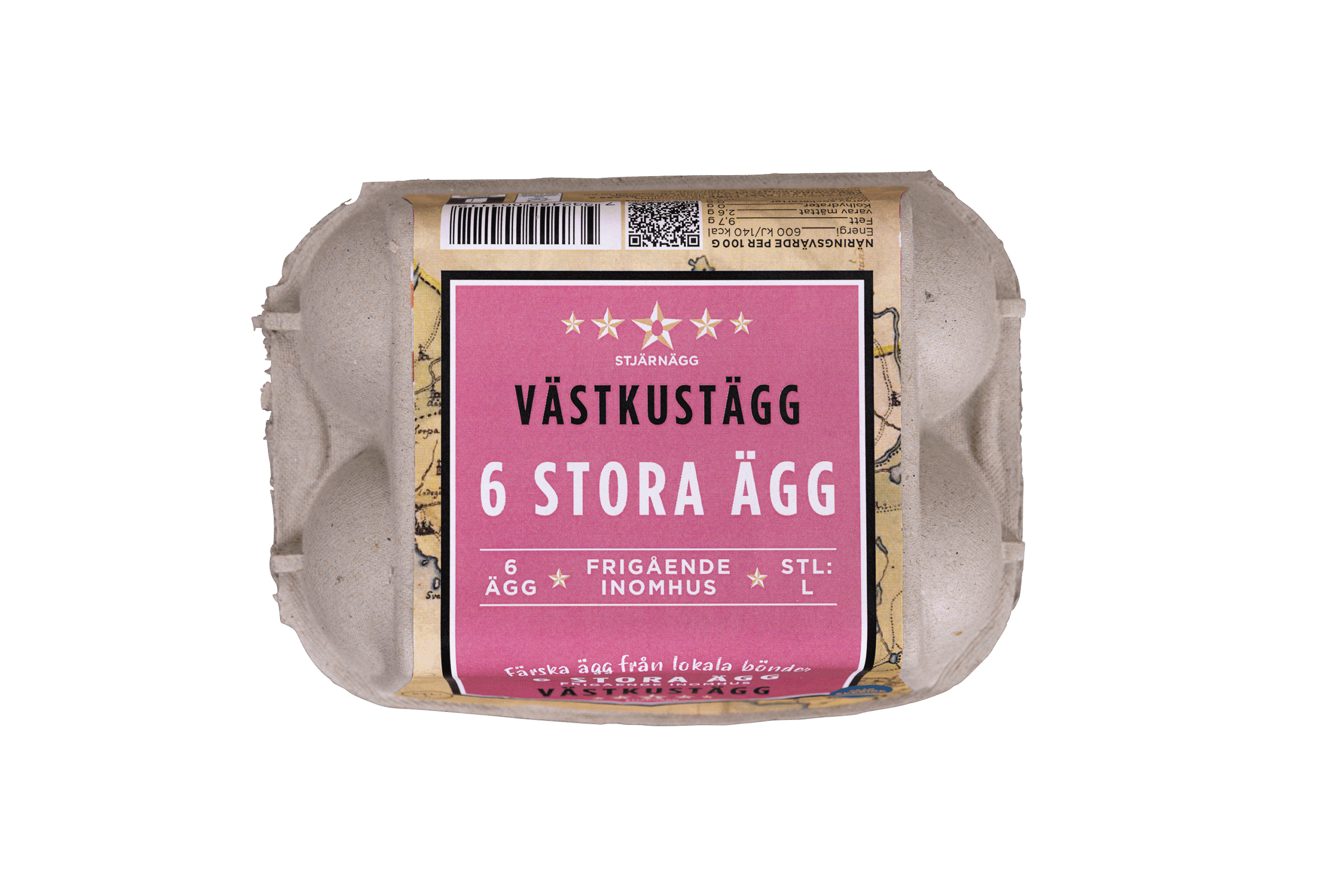 6-pack med svenska ägg från frigående höns inomhus från Västkusten.
